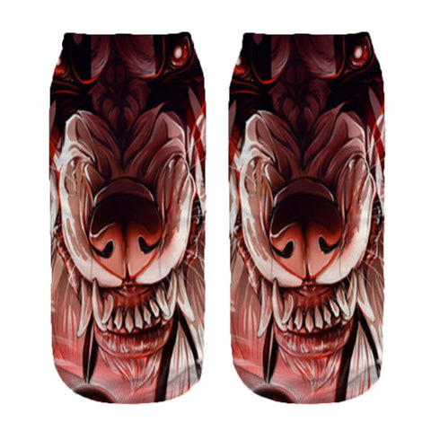 Fierce wolf Character Design Funny 3D Socks Fashion Printed Design for Girl Ladys Cartoon Socks Unisex Low Cut Ankle Socks