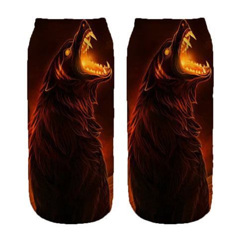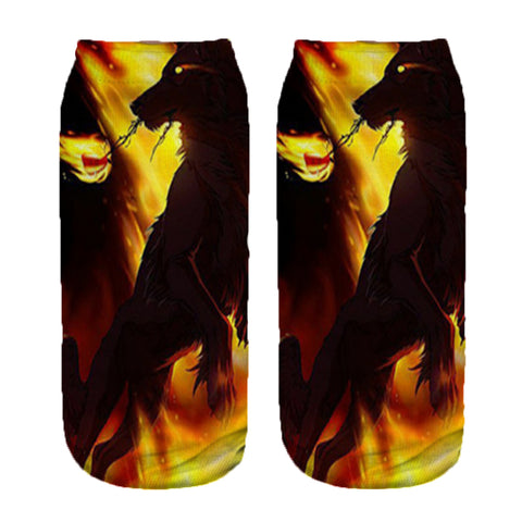 1pair/pack 3d fire wolf Charactor Unisex Sock Hot women's unisex socks Polyester fashion 19*8cm Women Socks for EUR34~40