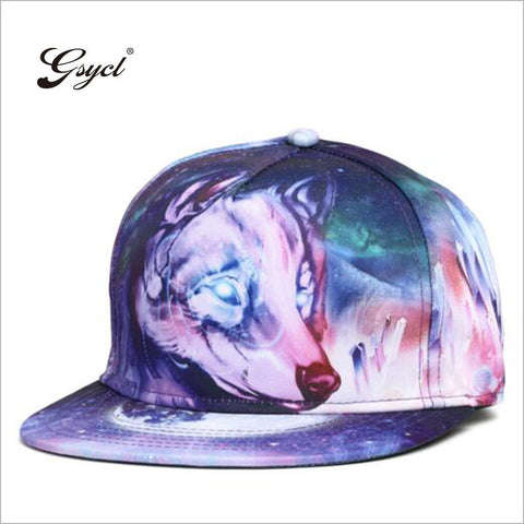 [Gsycl] 2017 New Fashion Male Lady Neutral 3D Print Baseball cap Hip Hop Hat Europe and America Outdoor Tide Cap Wolf pattern