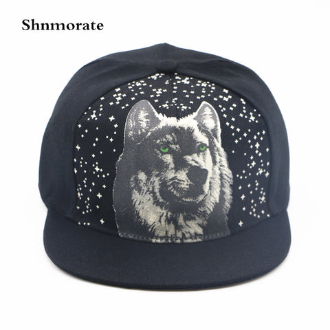 New Arrival Men Women Print WOLF Glow In The Dark Snapback Hats Adjustable Hip Hop Fluorescent Baseball Caps