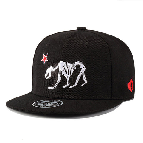 Wolf skeleton embroidery hat European and American foreign hip-hop street skateboard hat flat-brimmed black baseball cap