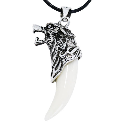 Vintage Wolf Tooth Dragon Alloy Pendant Necklace Men Antique Silver Tribal Stark Wolf Fang Tooth Pendant Necklace H5082 P0.50