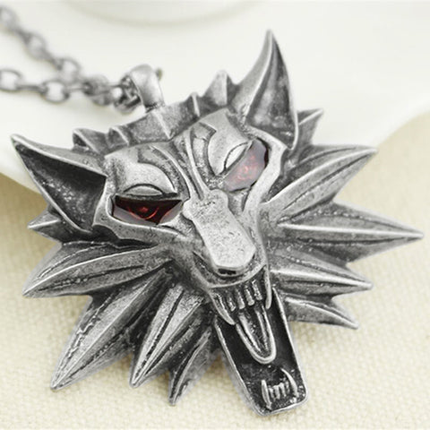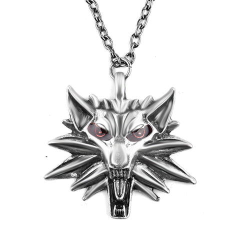 New Arrival Men's Witcher Wizard Zinc Alloy Wolf Head Pendant Wild Hunt Medallion Retro Necklace