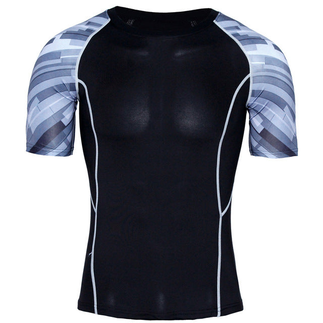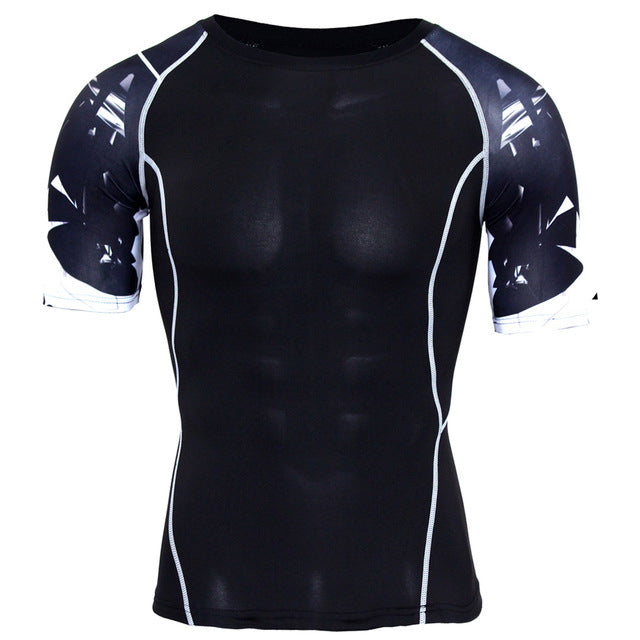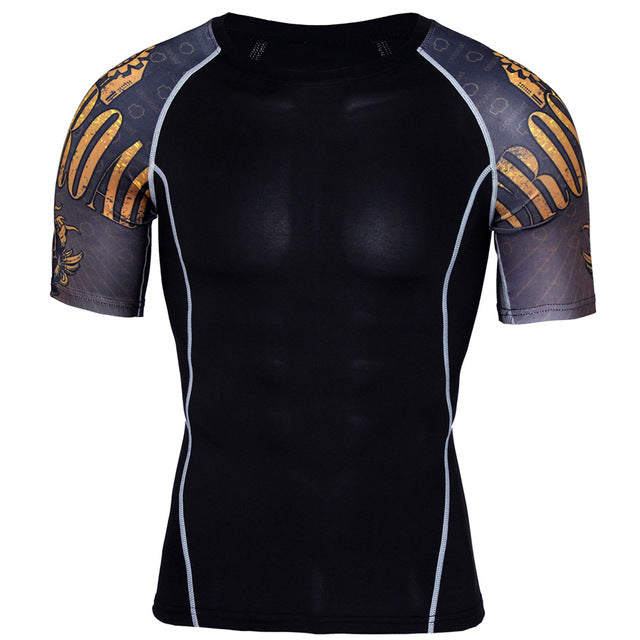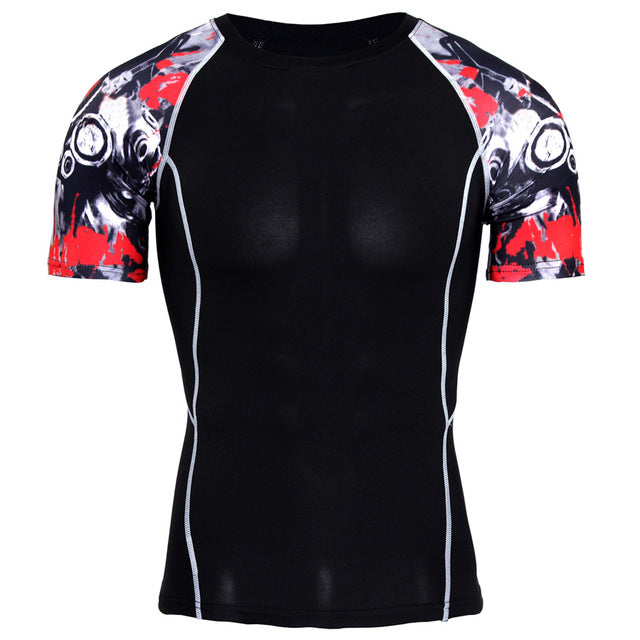 New Compression Shirt Splicing Sleeve Fitness Men Wolf Skull Anime 3D T Shirt MMA Short Sleeve Crossfit Bodybuilding Tee Shirt