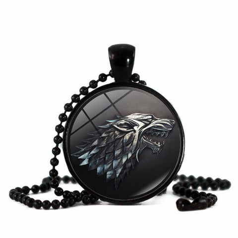 Movie Of Ice and Fire Game of Thrones Stark Wolf Pendant Glass Cabochon Picture Black Bead Chain Necklace for Women Jewelry gift