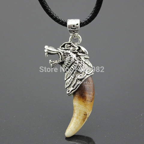Cool Boy Men's Tibetan Amulet Fangs Real Natural Tooth Vintage Silver Wolf Tooth Charm Pendant Necklace Gift YN281
