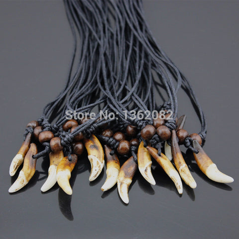 Wholesale 10pcs Tibet Real Tooth Fangs Wolf Teeth Pendants Surfer Adjustable Necklace Amulet Gift MN251