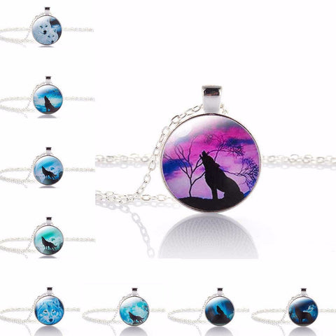 KISS WIFE 2017 Hot Fashion Wolf Moon Pendant Necklace Glass Silver Statement Chain Necklace Women Jewelry Glass Necklace