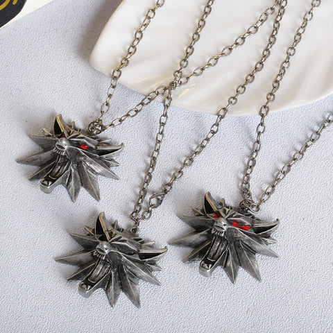 MINHIN Hot Selling Punk Necklace 3 Colors Medallion Pendant Wizard Witcher Wild Hunt Wolf Head Necklace For Men Spoof necklace
