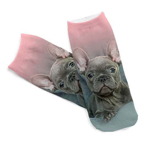 5Pairs/lot 3D Pugs Wolf Dogs Printed Socks New Unisex Low Cut Ankle Socks Cotton sock Women's Casual Charactor Socks Free ship