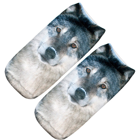 5 pair 3D Animal Wolf Printed Sock Women Unisex Cute Low Cut Ankle Socks Cotton sock Women's Casual Charactor Socks Free Ship