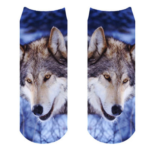 3D snow wolf Printed sock Women Girl Men Unisex Cute Low Cut Ankle Sock Soft Cotton sock Casual Charactor Sock for women