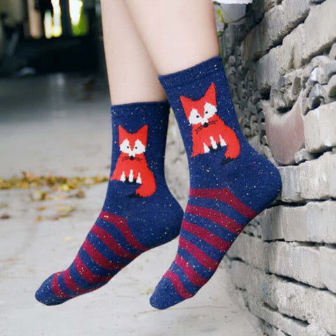 Random Color! Harajuku Animal Fox Wolf Striped Brand Lovely Cute Christmas Thick Wool Cotton Women Girl Crew Socks Winter