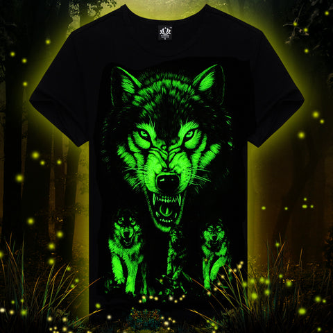 Novelty 3D Men's wolf T shirt Cool wolf Printed t shirts summer Casual 3D Short Sleeve glow in the dark T-shirts good quality
