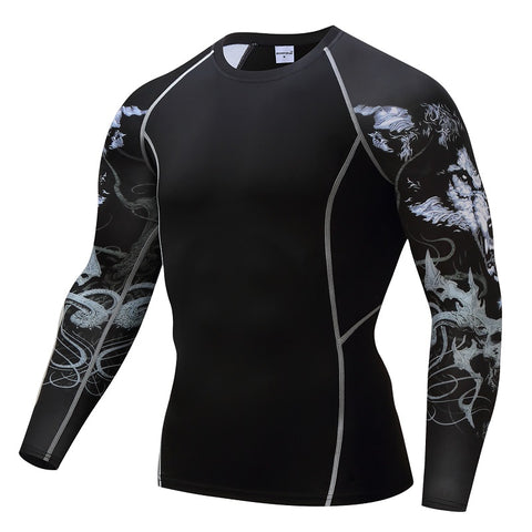 Mens Compression Sets T Shirts Wolf Print Lycra Crossfit T-shirt Joggers Base Layer Tight Tops Leggings Brand Clothing