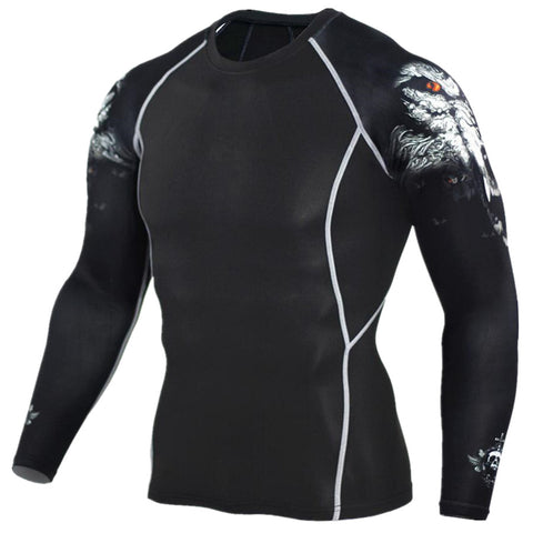 New Compression Shirt Splicing Sleeve Fitness Men Wolf Skull Anime 3D T Shirt MMA Short Sleeve Crossfit Bodybuilding Tee Shirt